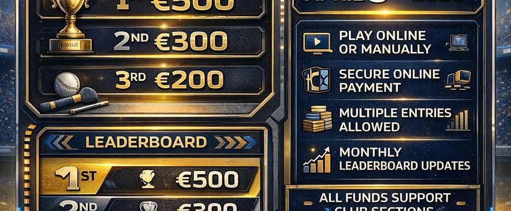 For just €20 per entry, you can test your sporting knowledge, compete against fellow supporters, and be in with a chance to win fantastic cash prizes: