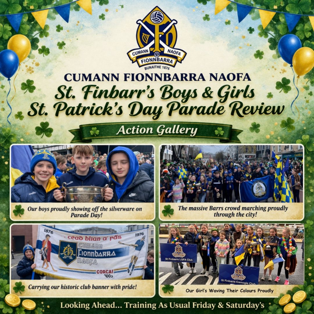 St. Patrick’s Day Parade: A Sea of Blue & Gold What a day for the club! Our “Action Gallery” captures the incredible energy of the St. Finbarr’s family during the St. Patrick’s Day festivities. It was a joy to see our youth teams marching through the city, celebrating our history and our future.